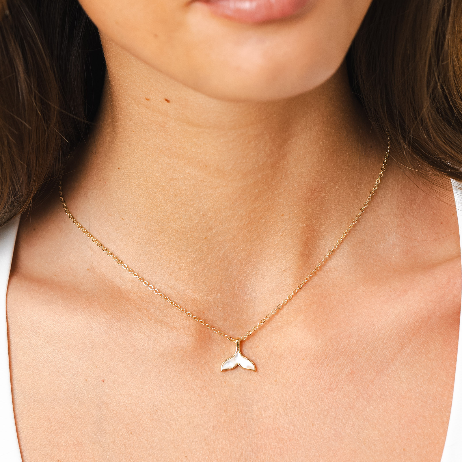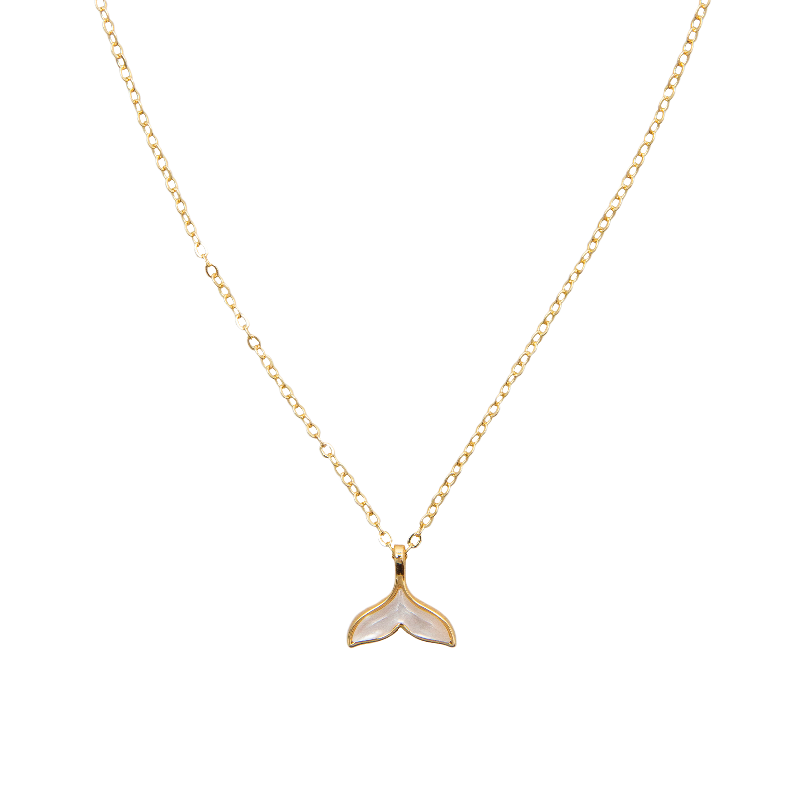 Dive into style and have a whale of a good time with our 14k Gold Whale Tail Charm Necklace featuring a shimmering Mother of Pearl accent! This elegant piece channels the beauty of the ocean with its graceful whale tail design. Perfect for ocean enthusiasts, it adds a splash of elegance to any outfit. Let your style sail away with this enchanting necklace!
