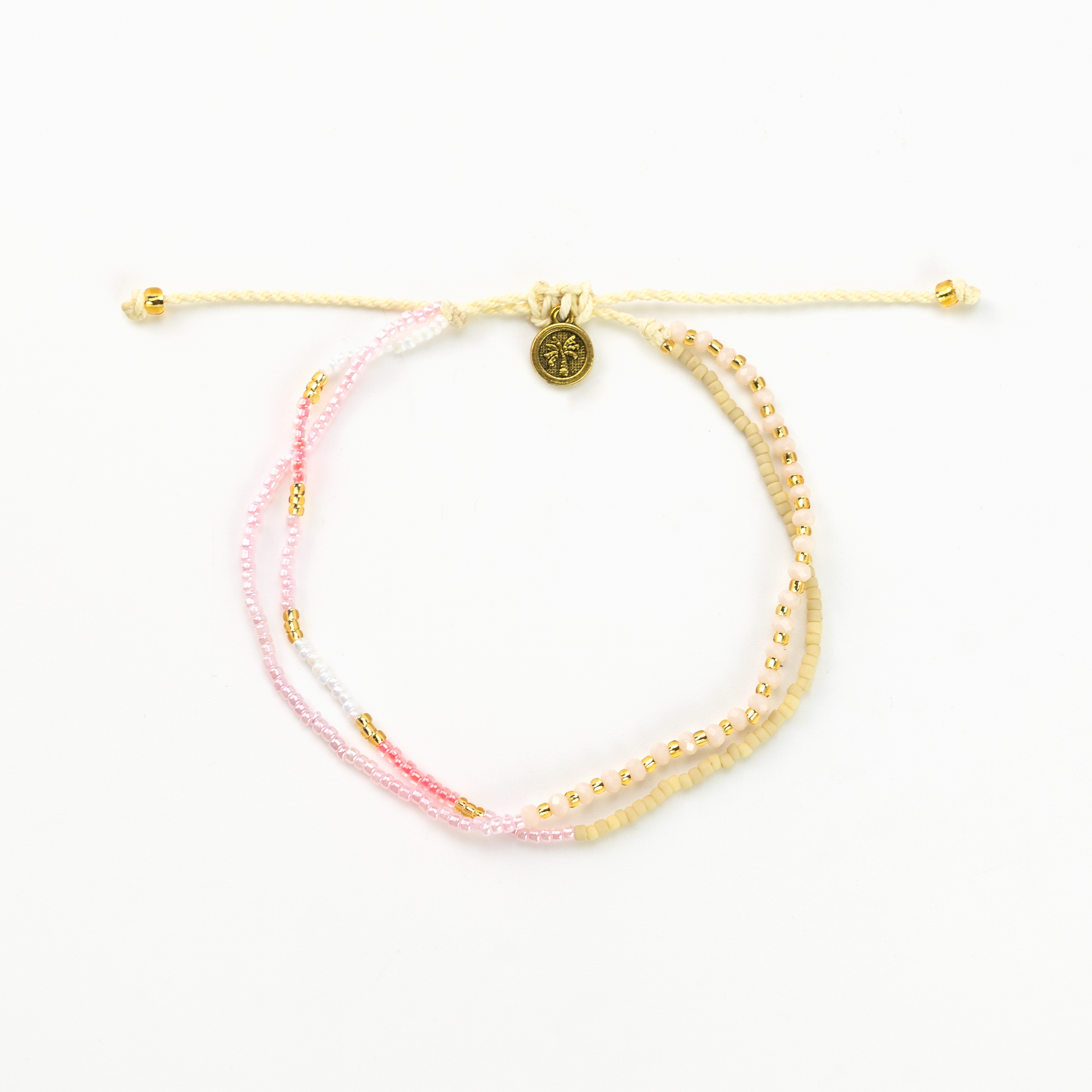 Beaded anklet with a wax polyester pull-string. Adjustable ankle circumference of approx. 20-40cm
