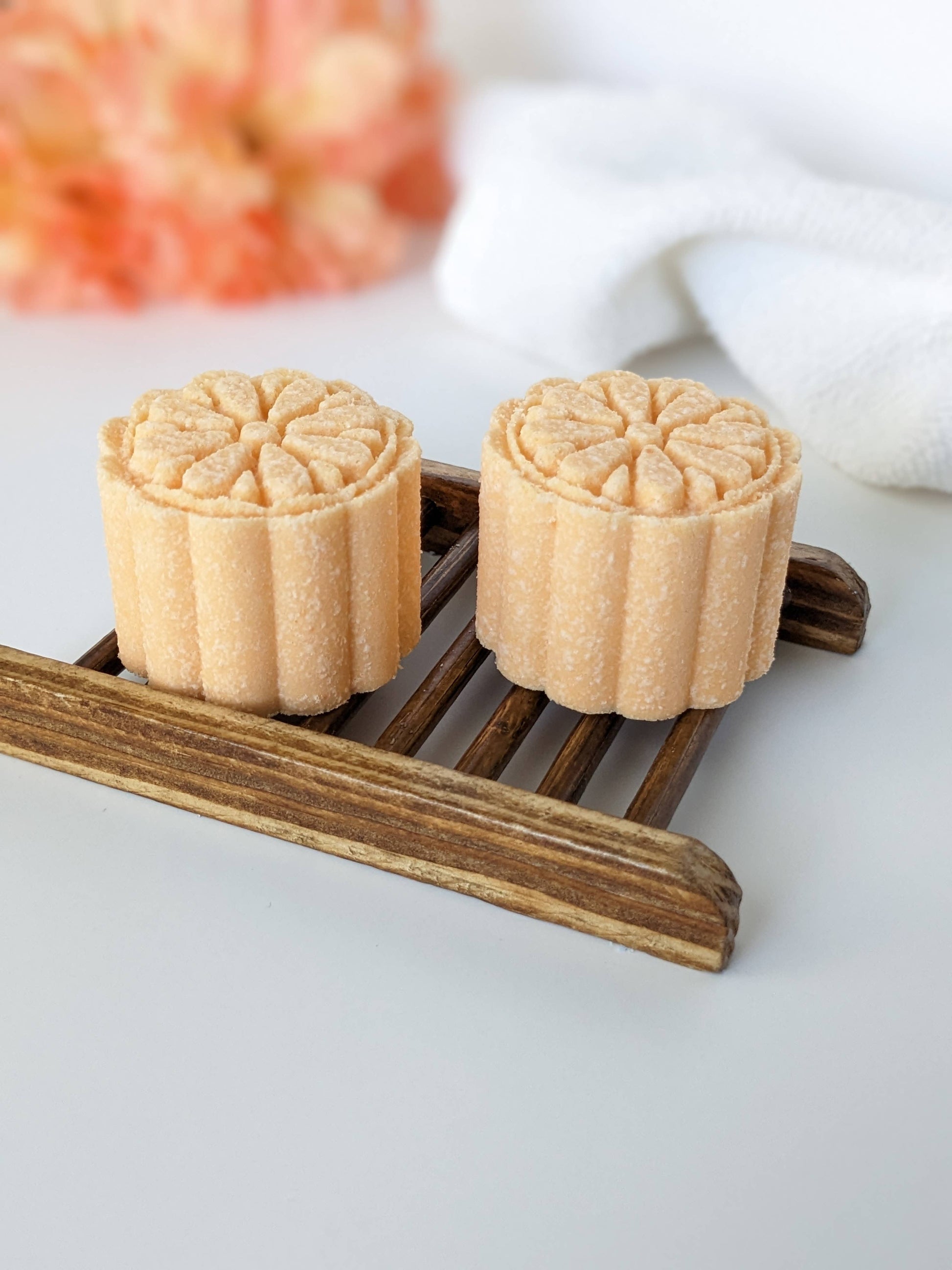 Scented with sweet orange essential oil and a hint of peach fragrance, this aromatherapy combo aids in brightening the mood and uplifting the spirit. The addition of menthol aids in carrying the aroma throughout the shower.