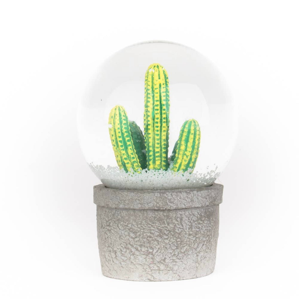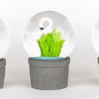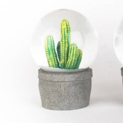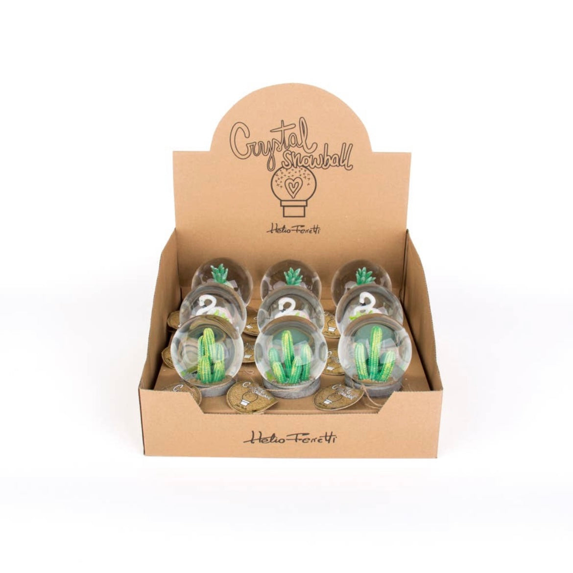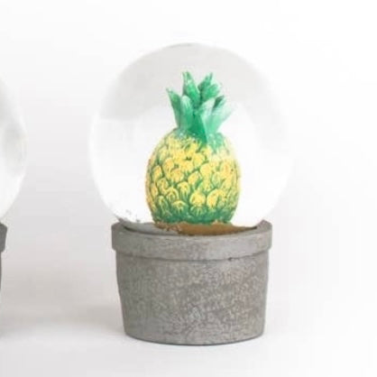 Big crystal snow globe with tropical figurine inside and potted stone base. By shaking it, creates a relaxing snowstorm effect. Models: Pineapple, Cactus and Flamingo. Decorate your home in winter and summer!