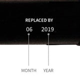 Cellulose tabletten er merket med utløpsdato ("Replace by xx xxxx").