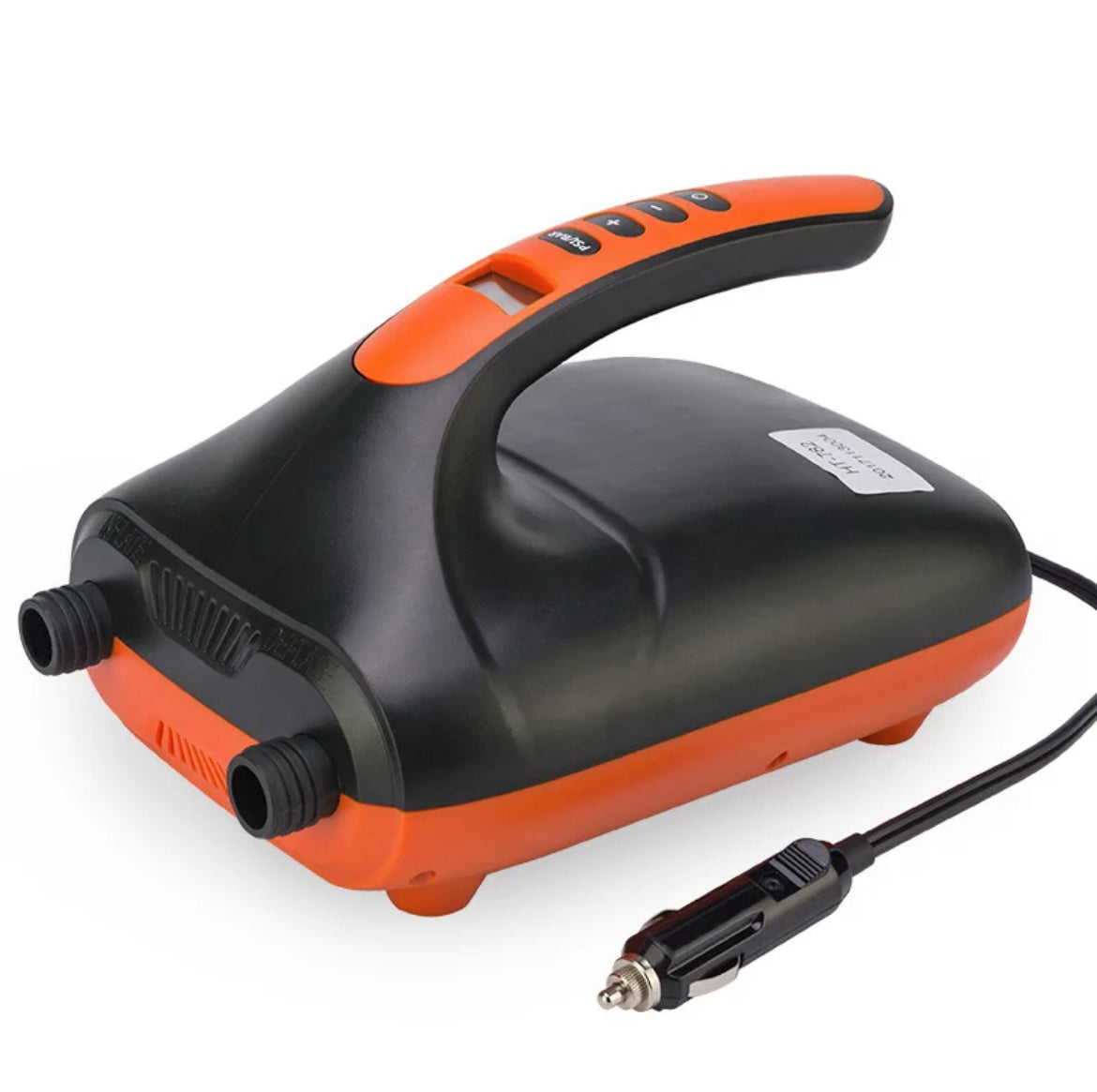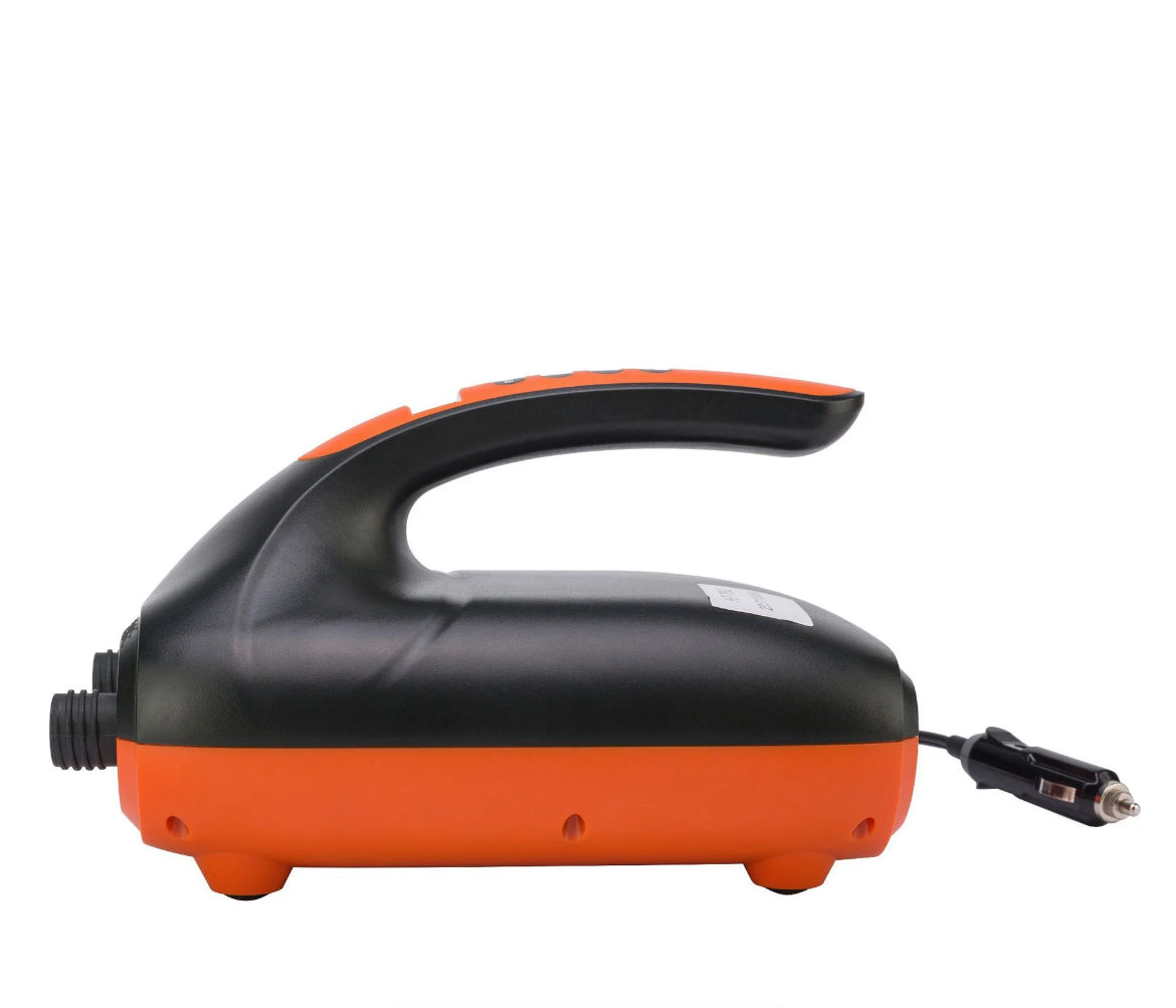 Kraftig 12V pumpe som raskt pumper opp SUP-brett og gummibåter. 20 PSI trykk og airflow på 350 liter pr. min. Stilles inn med ønsket trykk i LCD display.