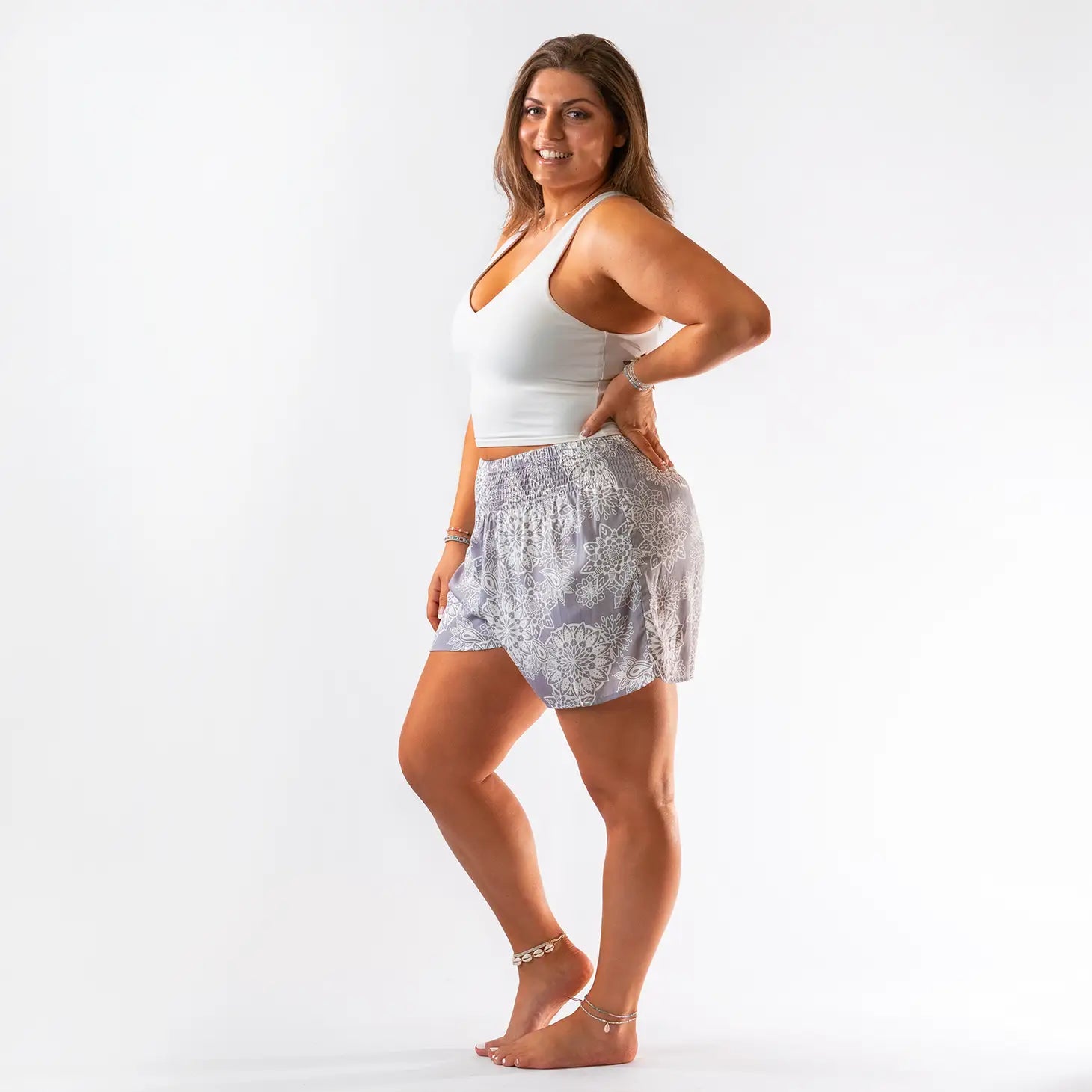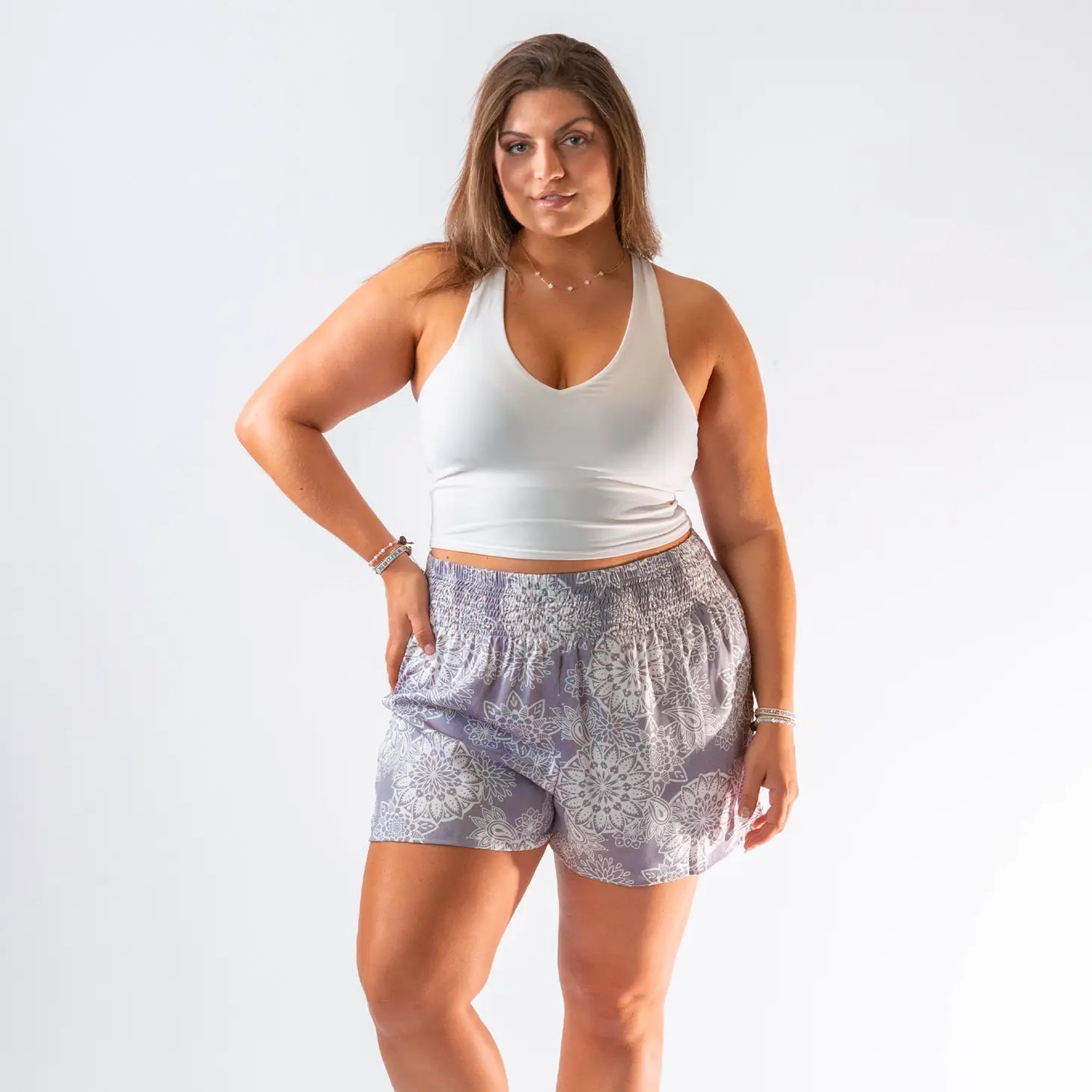 Inspired by our top selling lounge pants, Lotus and Luna's new beach lounge shorts are sure to be a favorite among your customers this season! Complete with a comfortable elastic waistband and gorgeous new patterns, they're perfect for the beach or any casual outing. Color: Lavender Sizing details: S/M - Recommended for sizes: 0-12 L/XL - Recommended for sizes: 8-18 Details & Care: Machine Wash on Delicate, hang dry, low iron