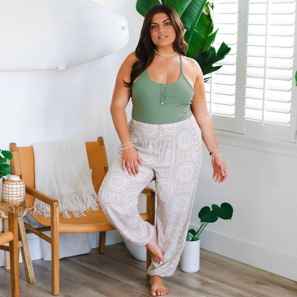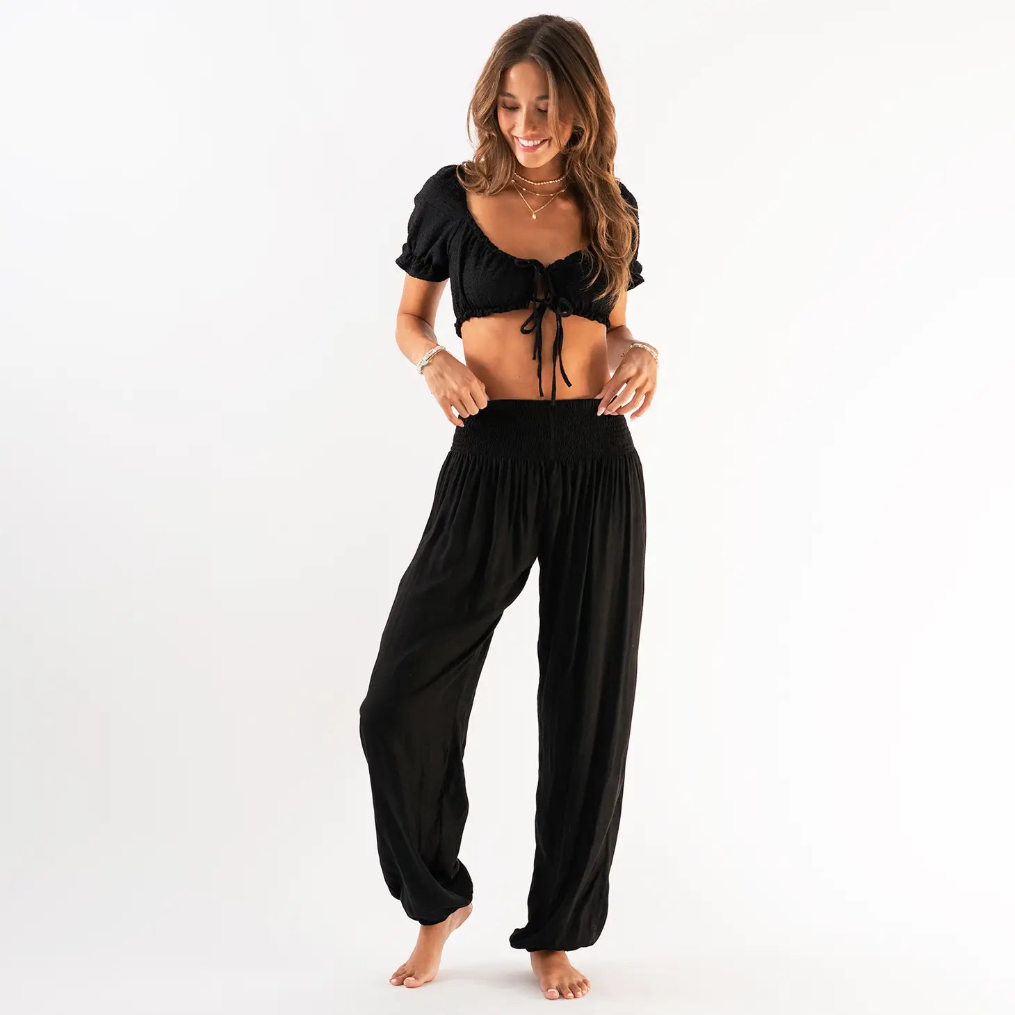Relax in style in our cute and comfy lounge pants! Wear them to yoga, the beach, or girl's night in! Pair them with a bikini top, body suit, or cropped tee for maximum style, comfort, and all the turning heads.