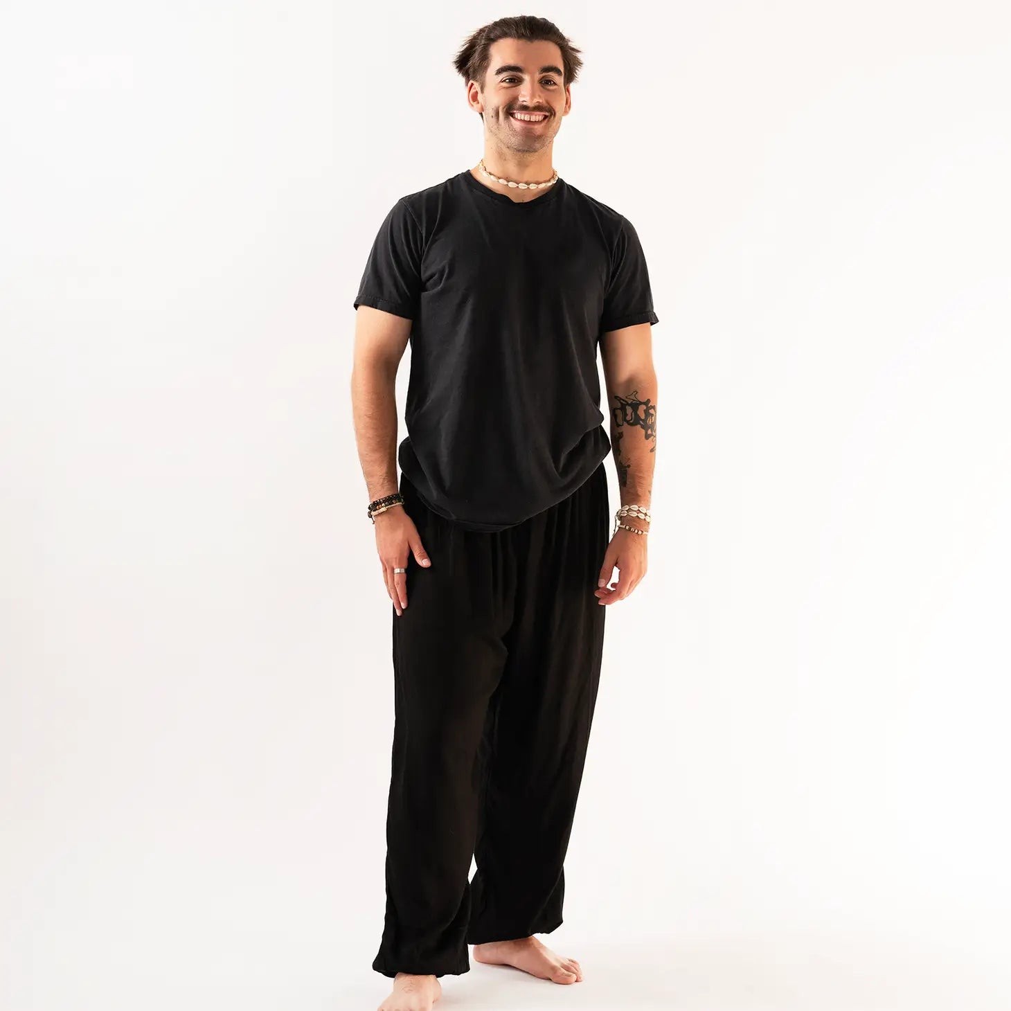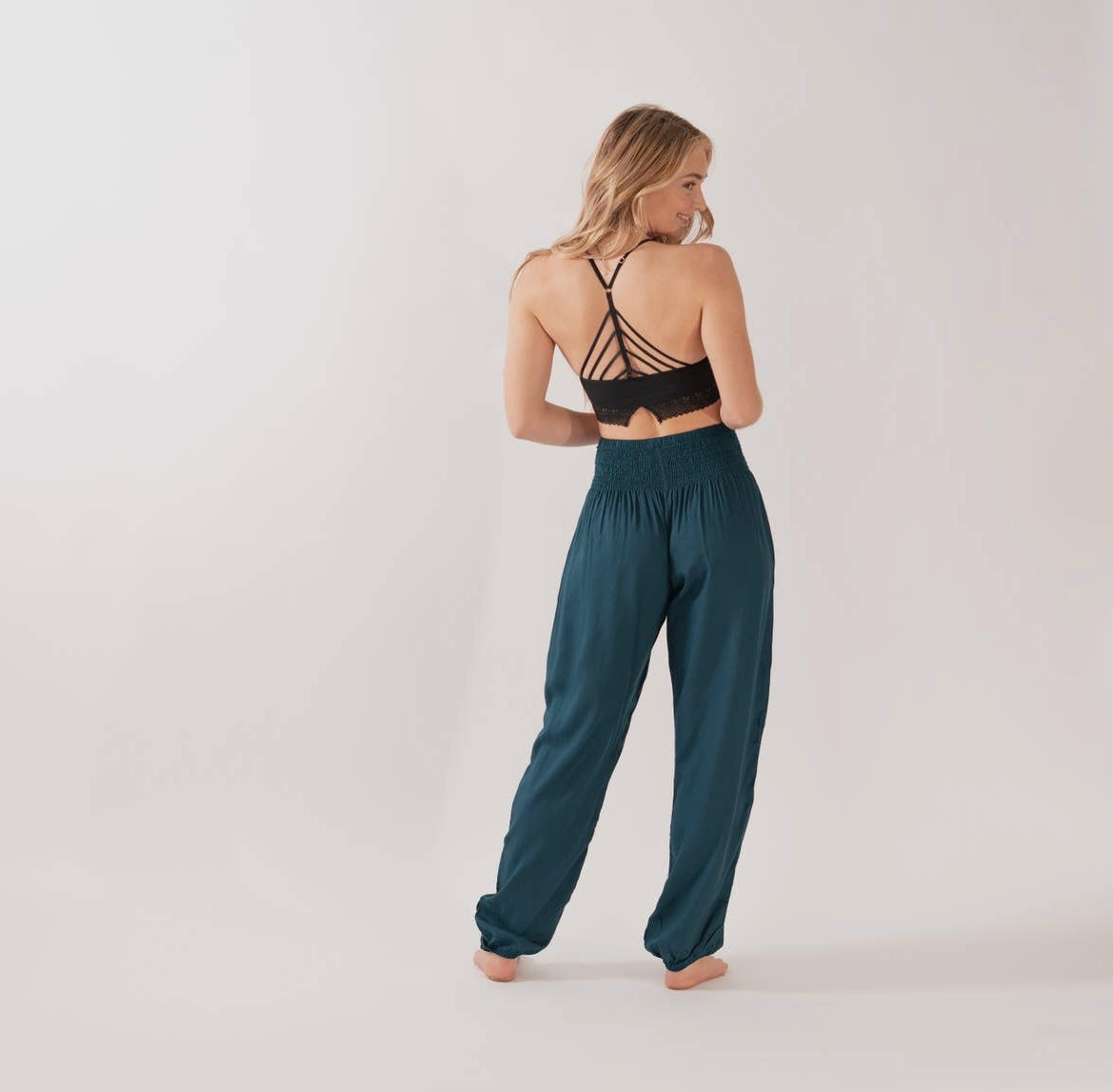 Incredibly soft and lightweight, an elastic waist and cinched leg are perfect for relaxation and movement.