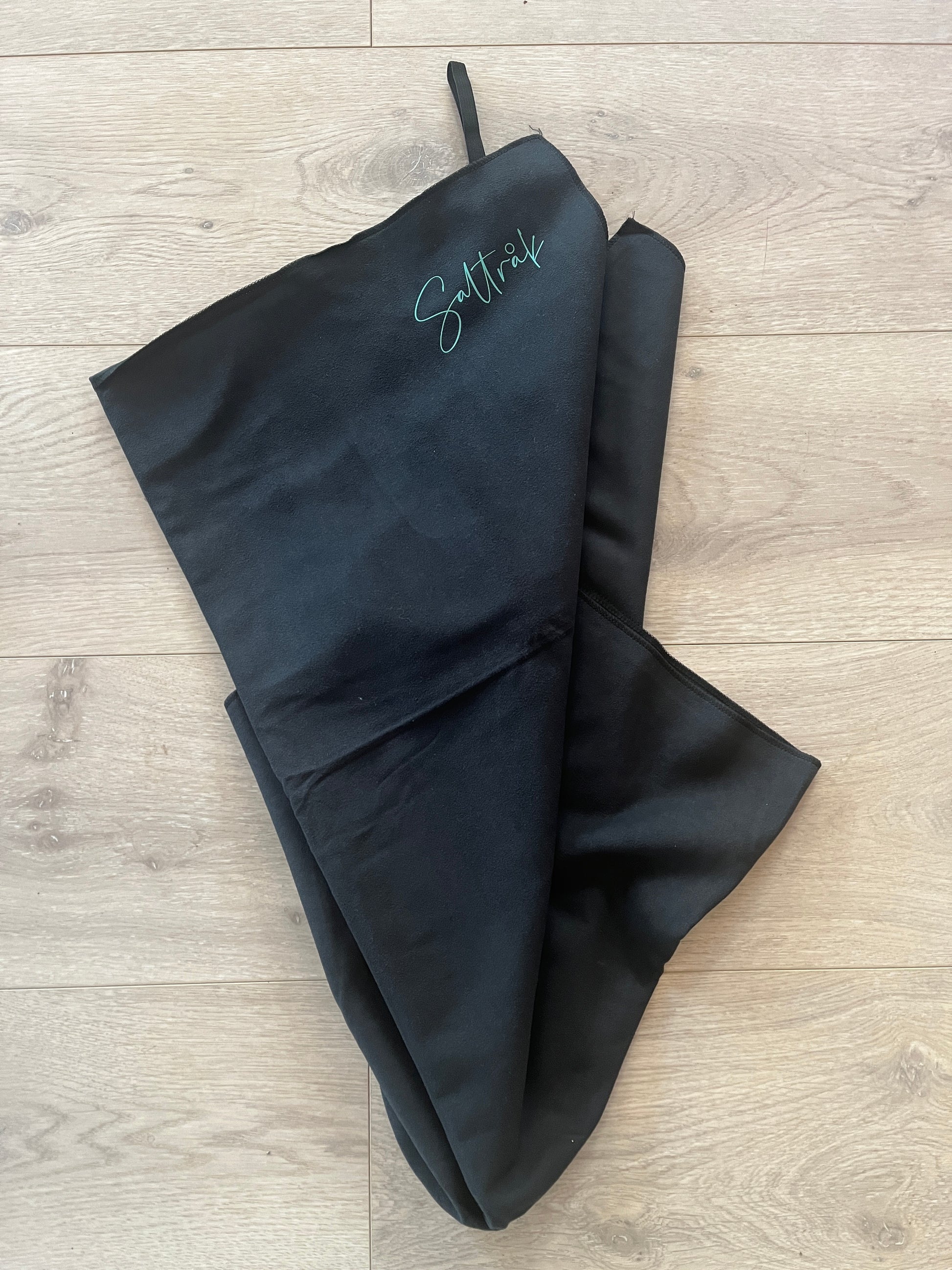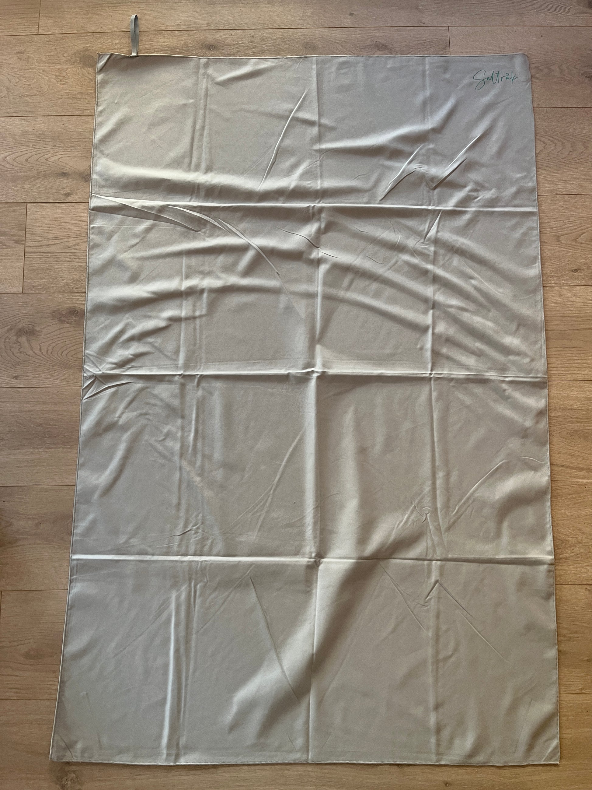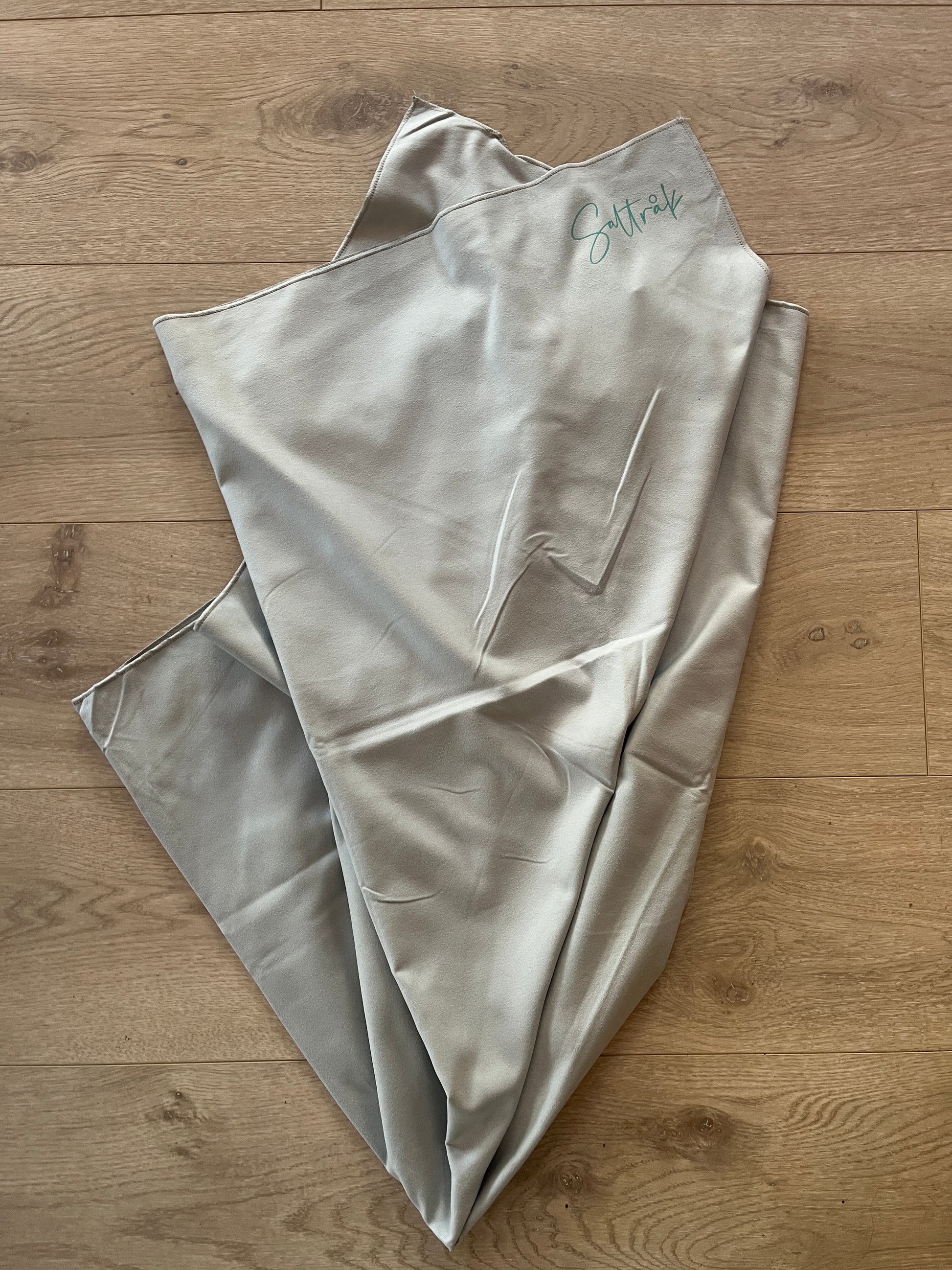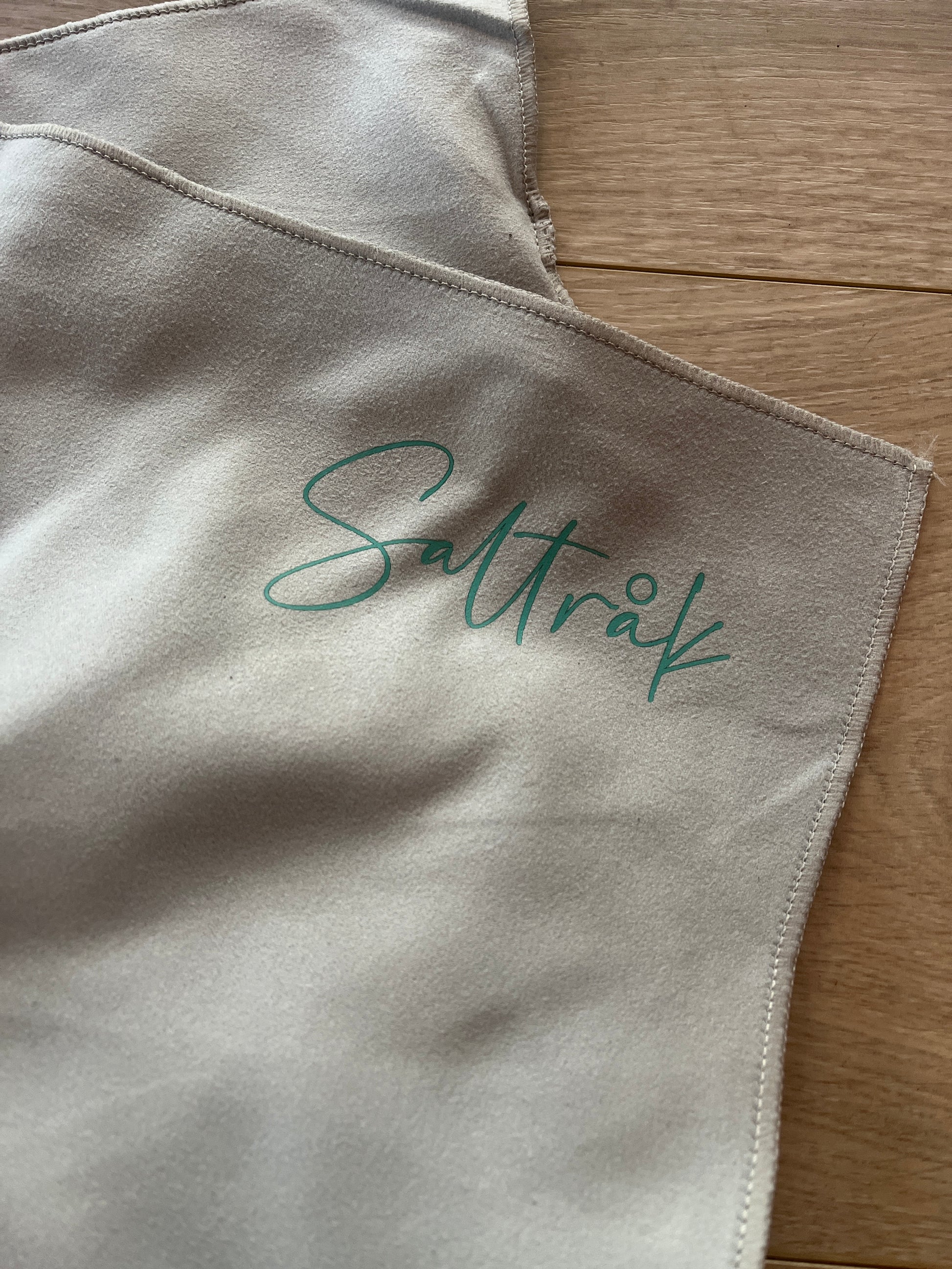 Hurtigtørkende microfiberhåndkle, (190g) med "Saltråk" trykk i et hjørne.
