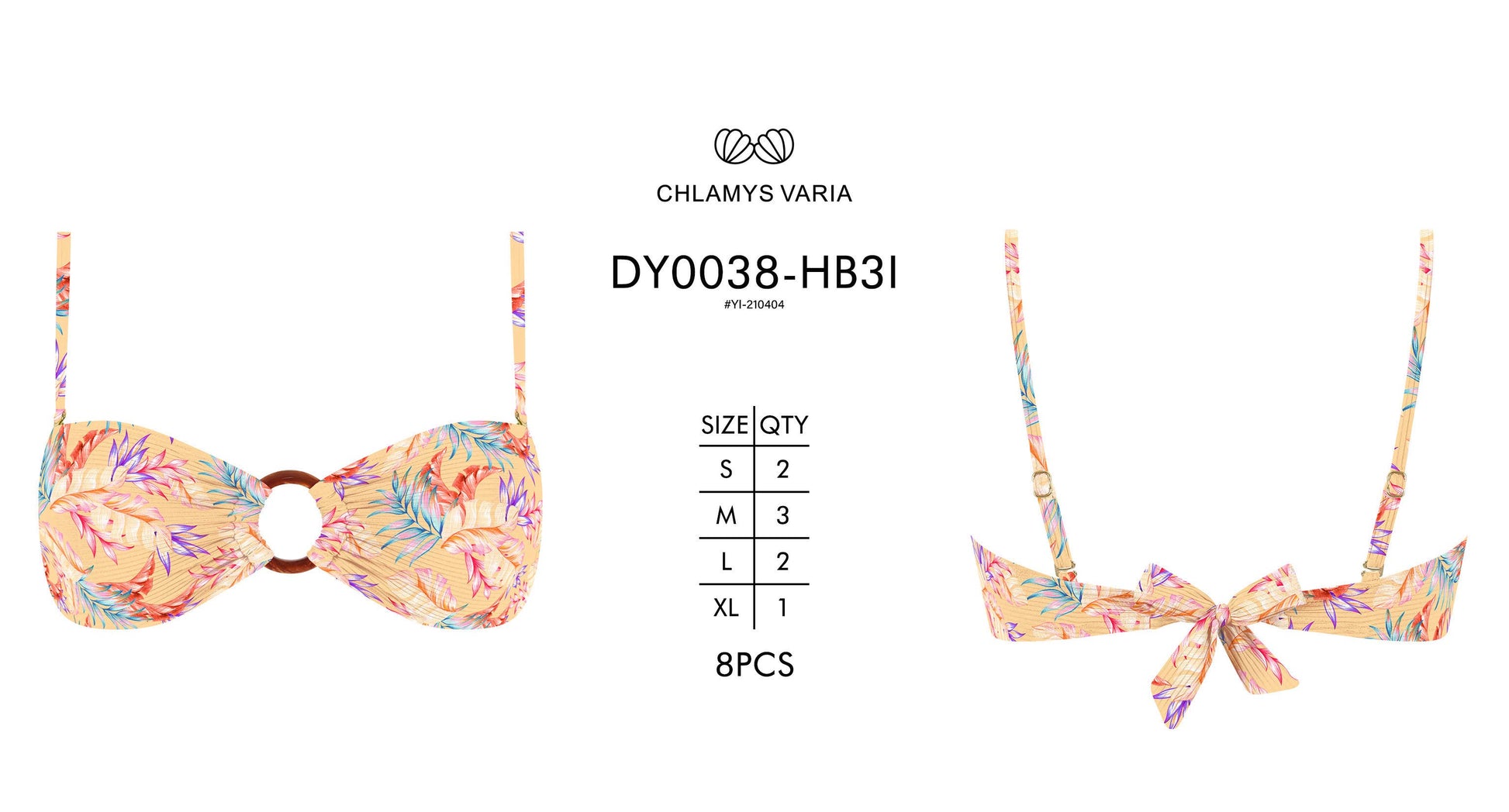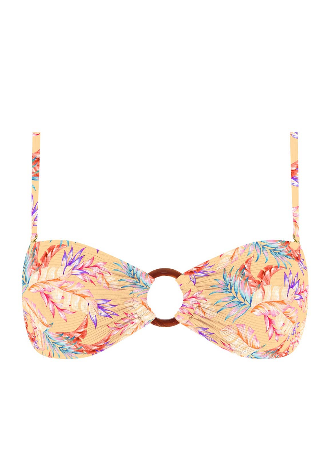MrMiss - Ribbed Bandeau Bikini Top - Amber Palm frond Print