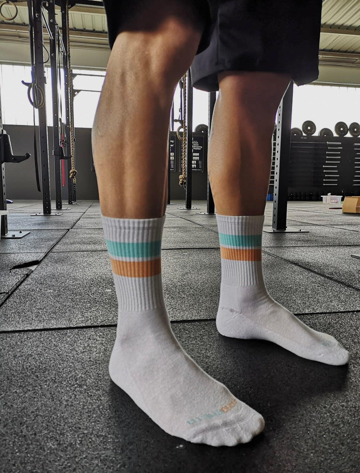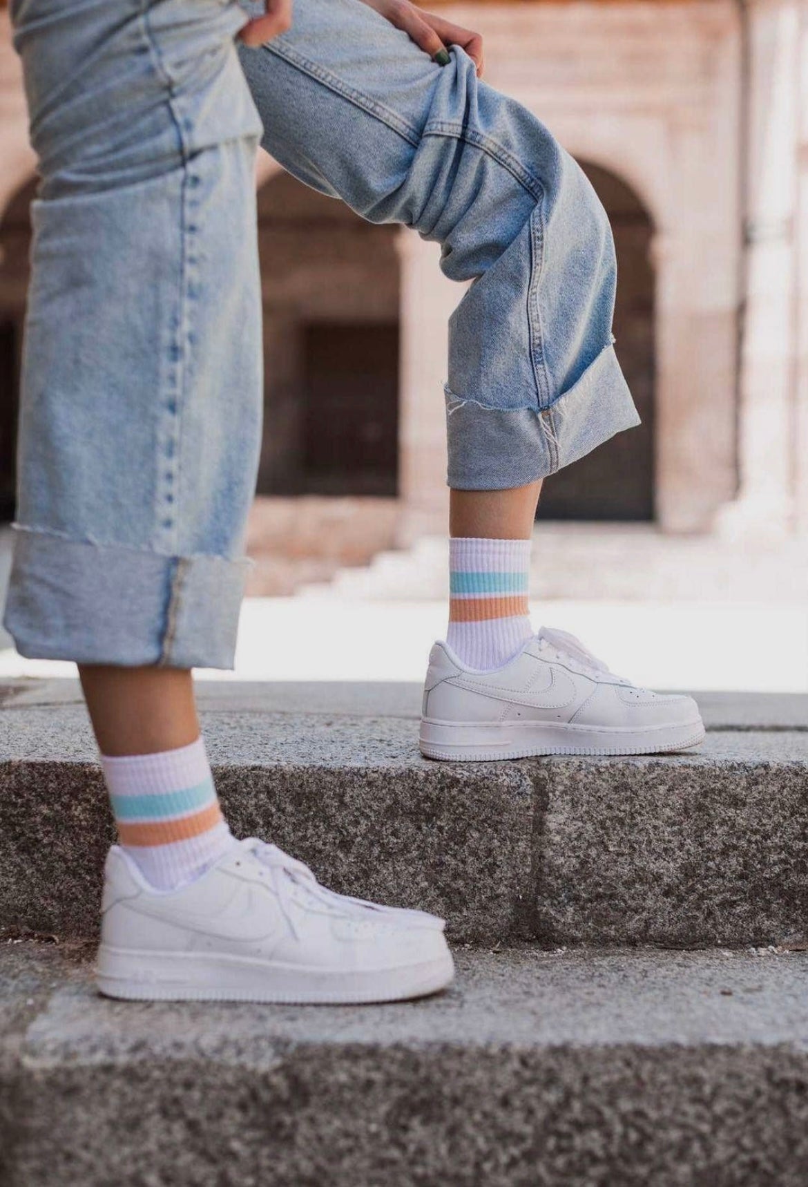 Super soft, sporty socks that will keep your feet comfortable, whether you have an active sporting activity or for a relaxed and irreverent style in your daily life. The sock is made with a conventional lycra that adjusts to the size of the foot, without seams, and with a cushioned insole that ensures your comfort. Perfect socks for sports, gym, crossfit, paddle tennis, running/walking, soccer, bicycle, yoga, pilates... etc Composition: 80% cotton | 15% polyamide | 5% elastane Size: One