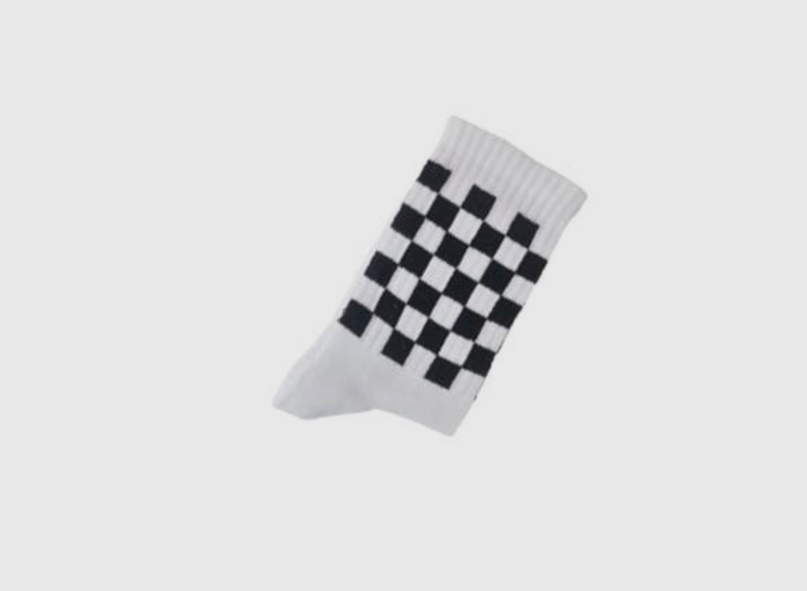 Supermyke sokker til barn med "Old School" rutemønster i svart og hvit.