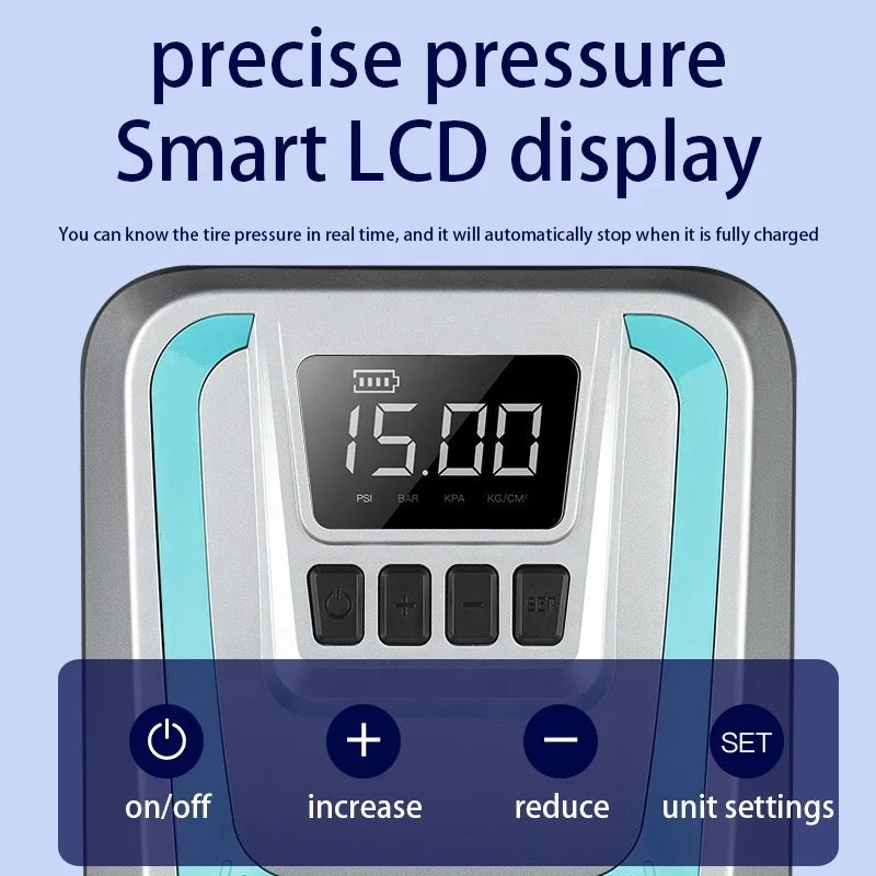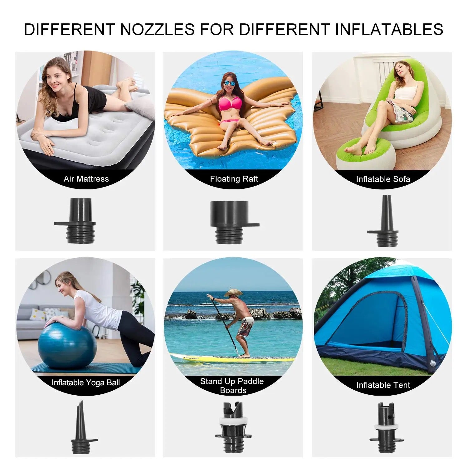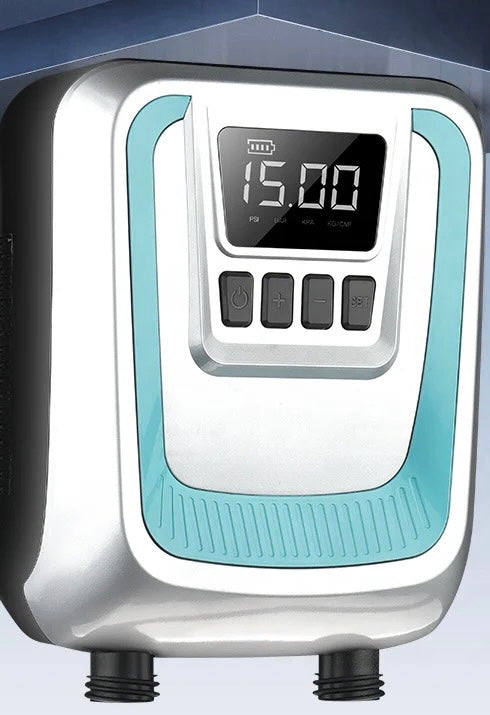 Kraftig oppladbar elektrisk pumpe som raskt pumper opp SUP-brett og gummibåter. 20 PSI trykk. Stilles inn med ønsket trykk i LCD display.