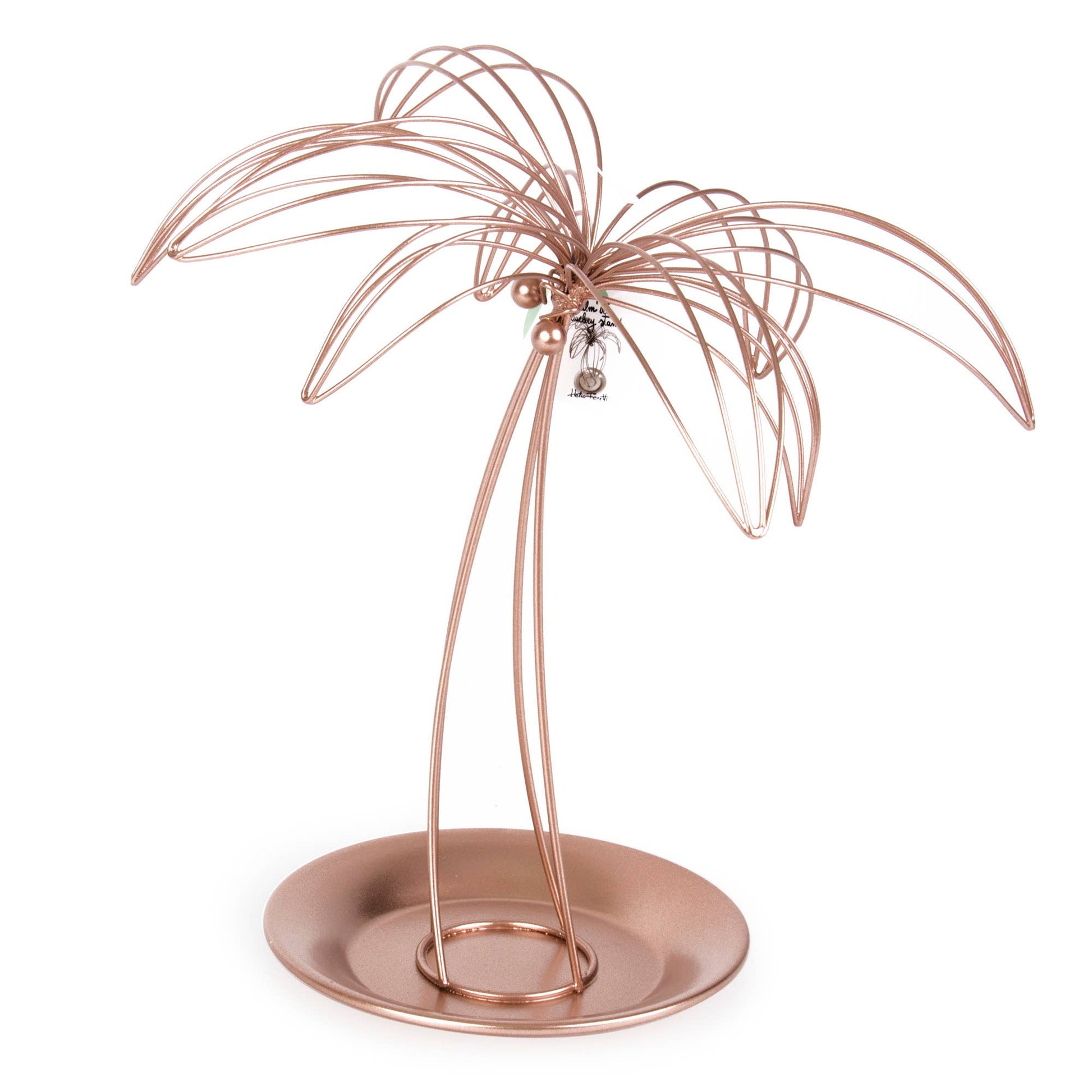 Jewelry box in the form of a golden tropical palm tree. It has a plate in the base to deposit rings and earrings of thread and in its branches you can hang necklaces, pulsars or earrings with hook.