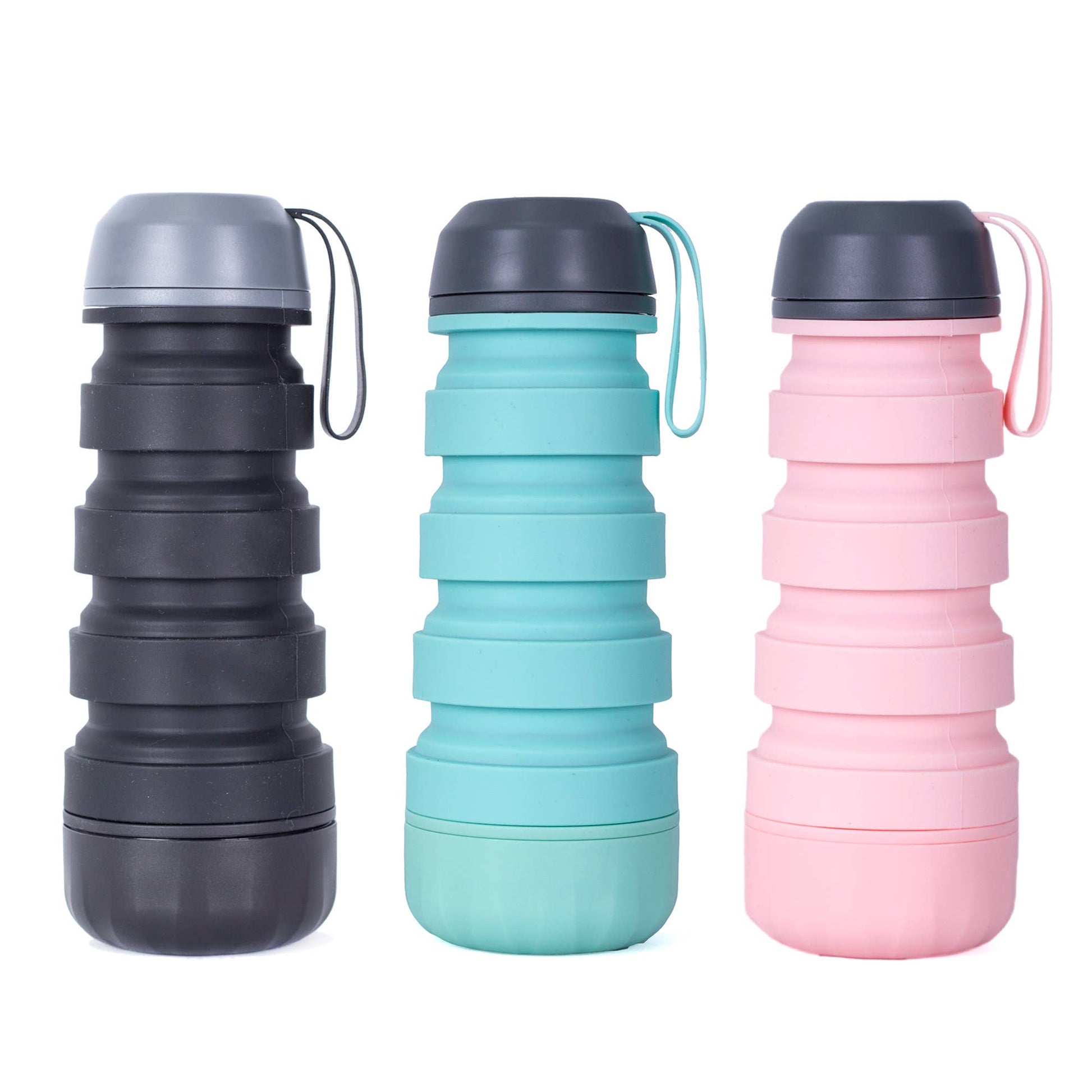 Simple BPA free silicone water bottle, foldable and portable. It has a screw cap, with a small rubber band to tie it where you need or tie it on your wrist. You can fold it and it will take a small space, so it is perfect for everyday use as well as for your longer trips. It includes a secret coin storage compartment at the base. Be the change you want to see in the world! Colors: pastel pink, pastel blue, black.