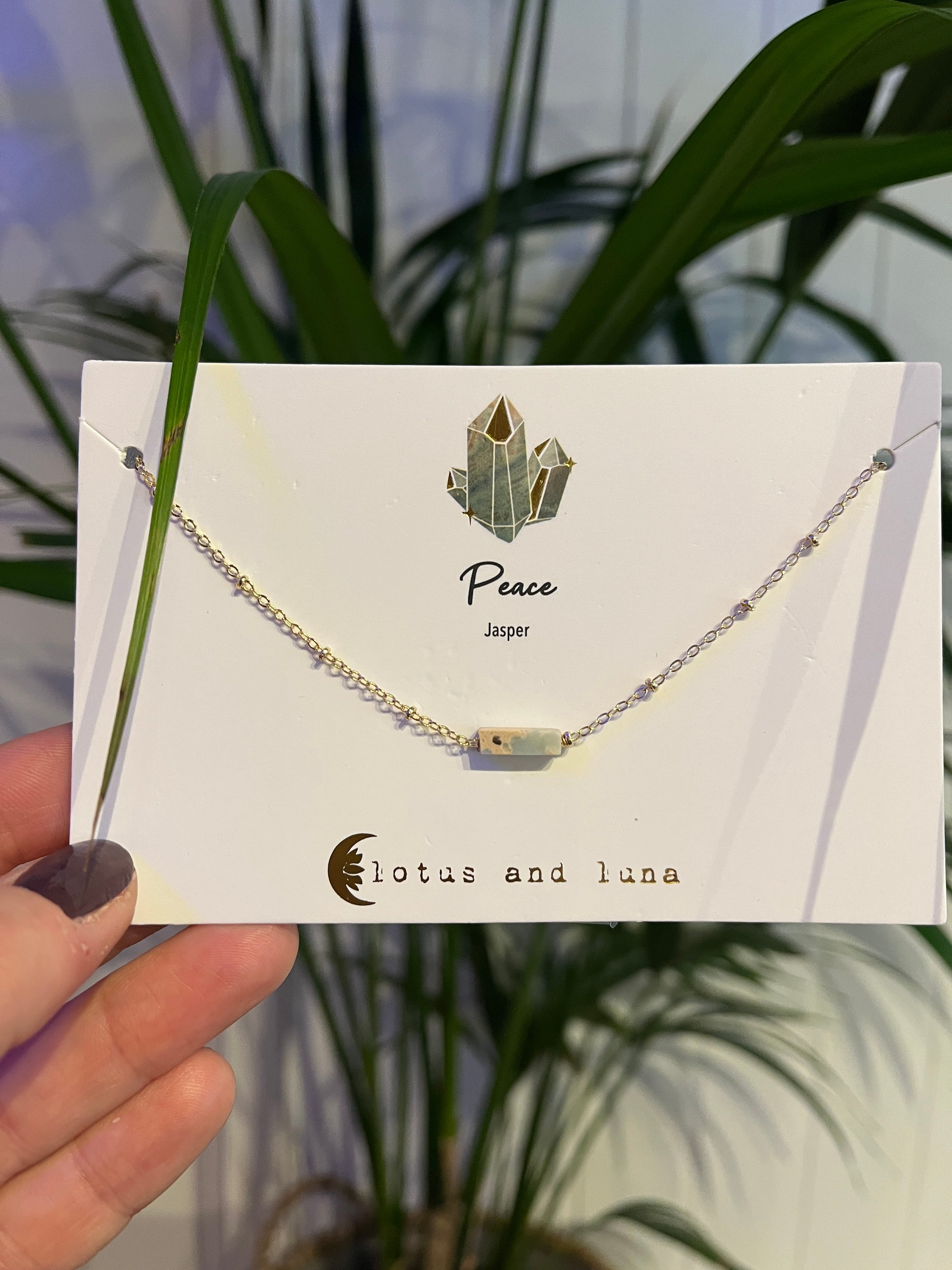"Jasper tilbyr en jevn og beroligende frekvens, og fremmer stabilitet og åpner kommunikasjon for å bygge sterkere forbindelser. Denne jordingssteinen bekjemper også utmattelse og fremmer indre refleksjon for en generell følelse av fred."