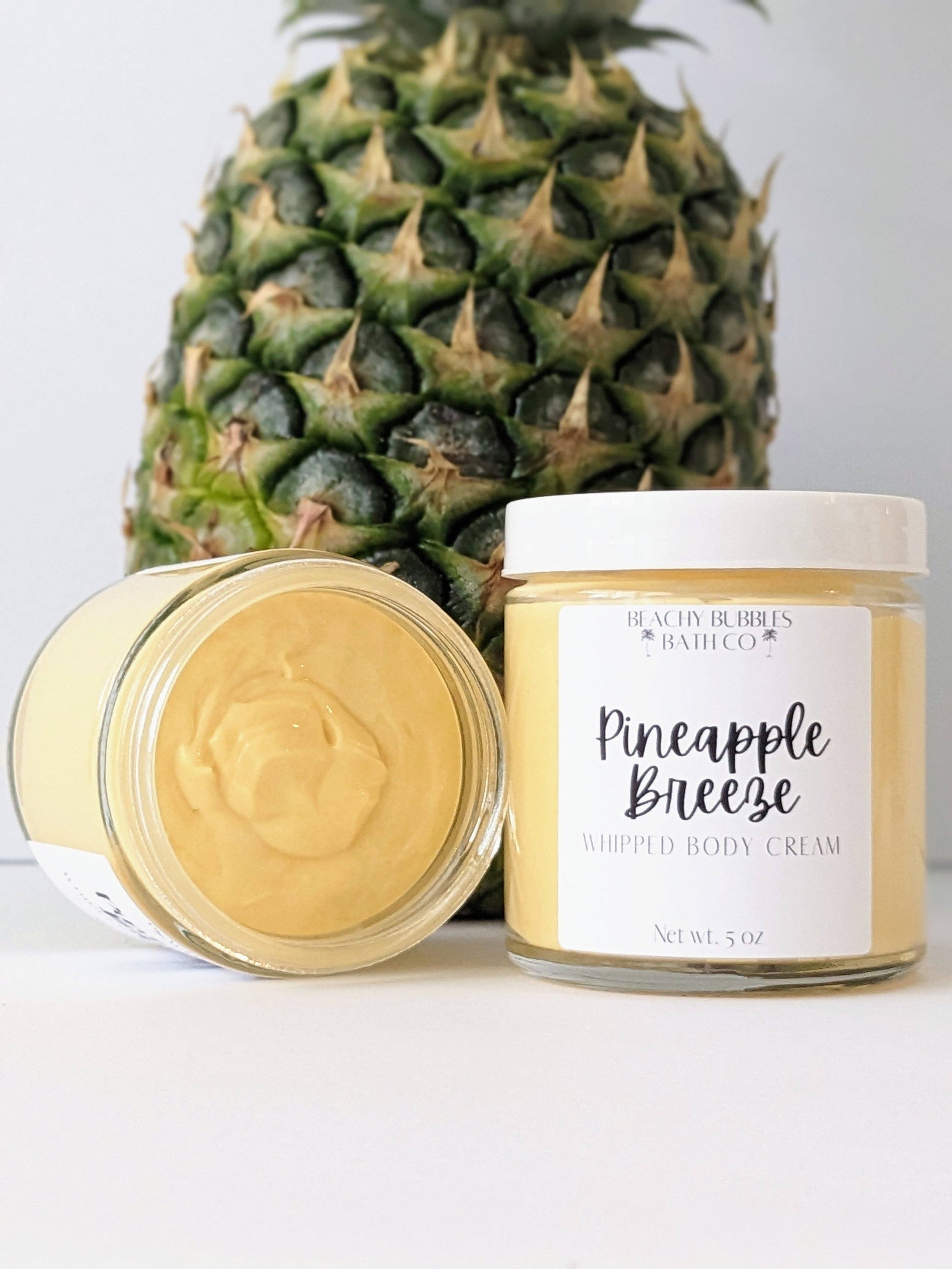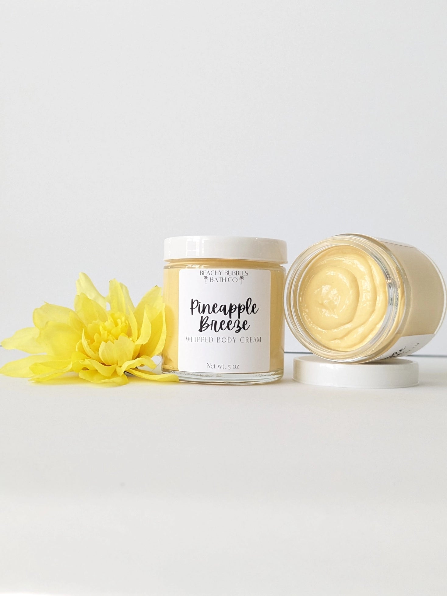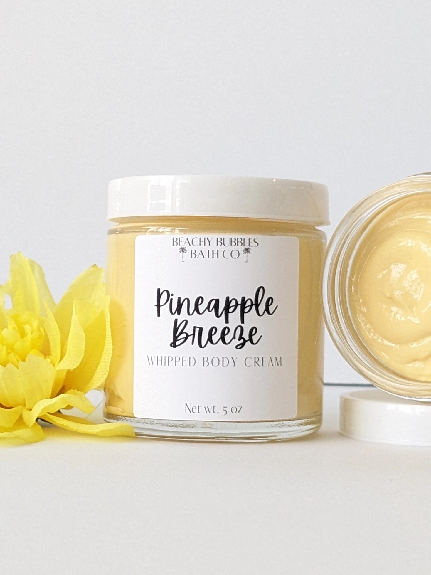 Pineapple Breeze whipped body cream fra Beachy Bubbles Bath Co.