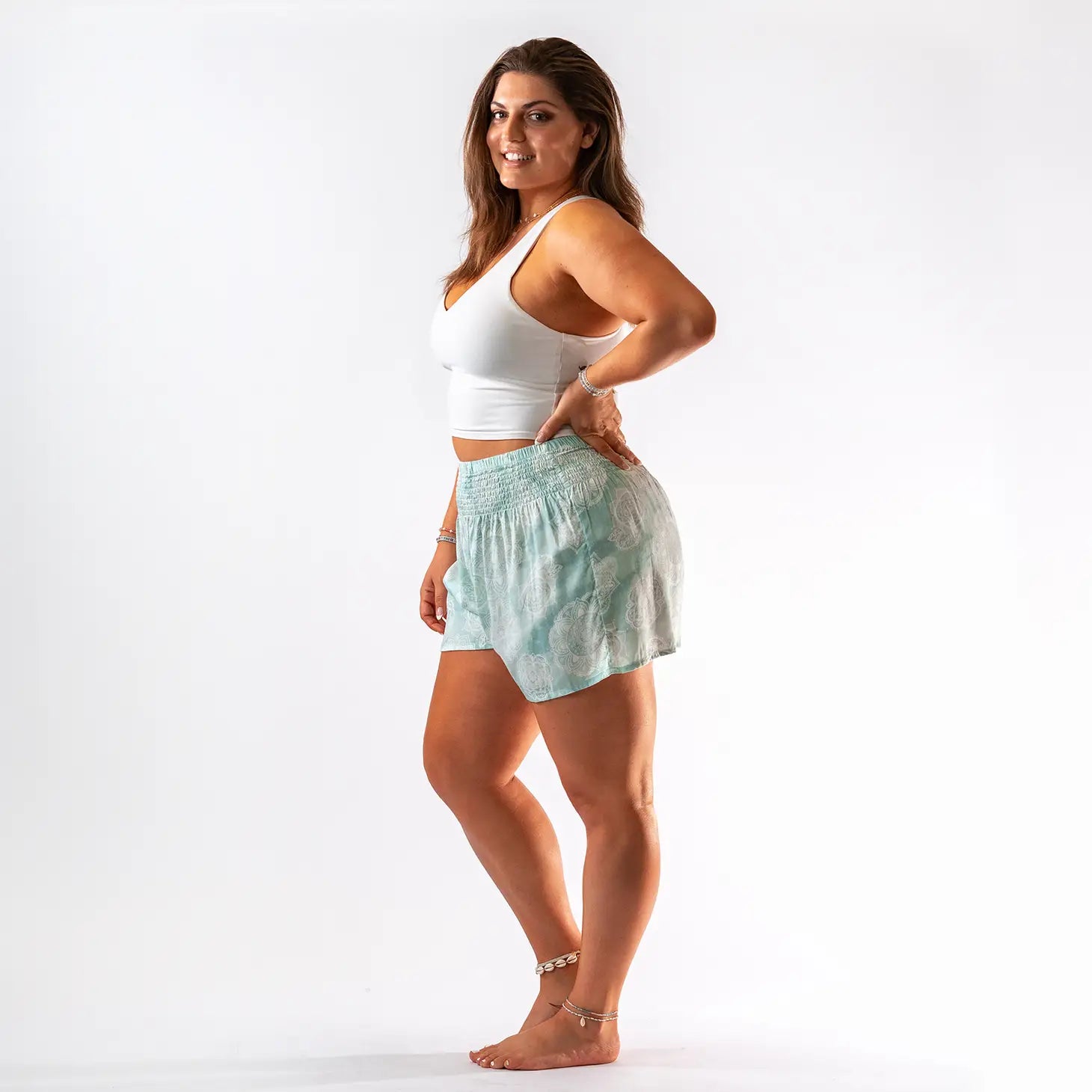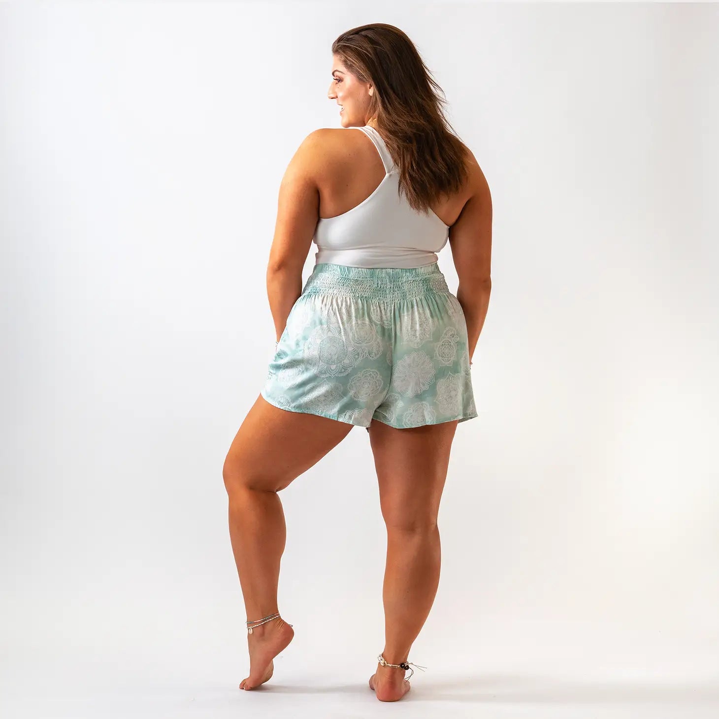 Inspired by our top selling lounge pants, Lotus and Luna's new beach lounge shorts are sure to be a favorite among your customers this season! Complete with a comfortable elastic waistband and gorgeous new patterns, they're perfect for the beach or any casual outing. Color: Sage Green Lace Mandala Sizing details: S/M - Recommended for sizes: 0-12 L/XL - Recommended for sizes: 8-18 Details & Care: Machine Wash on Delicate, hang dry, low iron