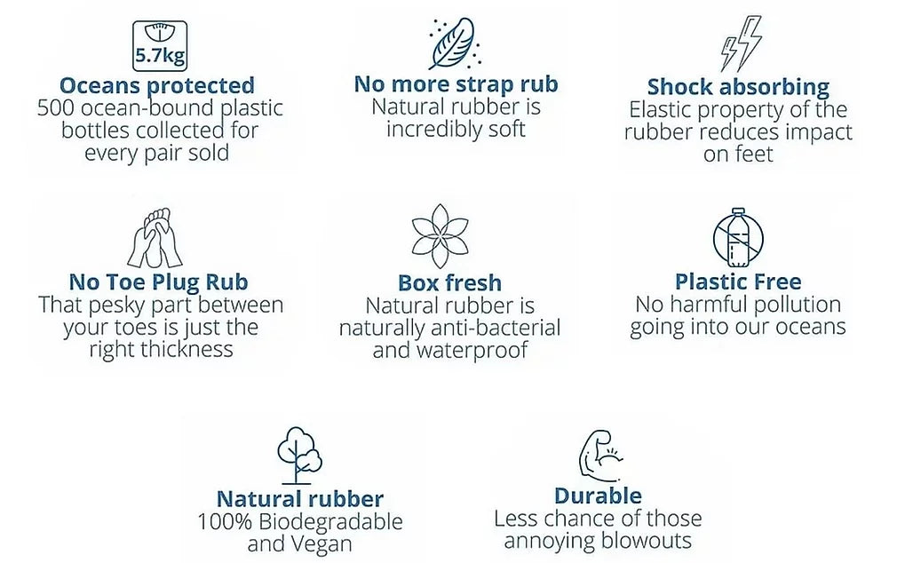 Sea Sense Flip Flops are plastic-free and crafted from 100% biodegradable natural rubber. For every pair sold, we collect 500 ocean-bound plastic bottles, from the world's most polluted rivers and coastlines.