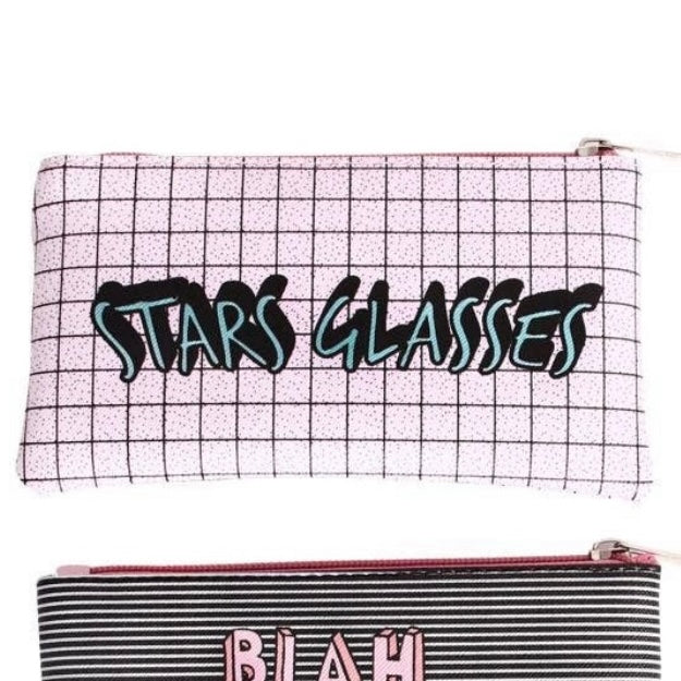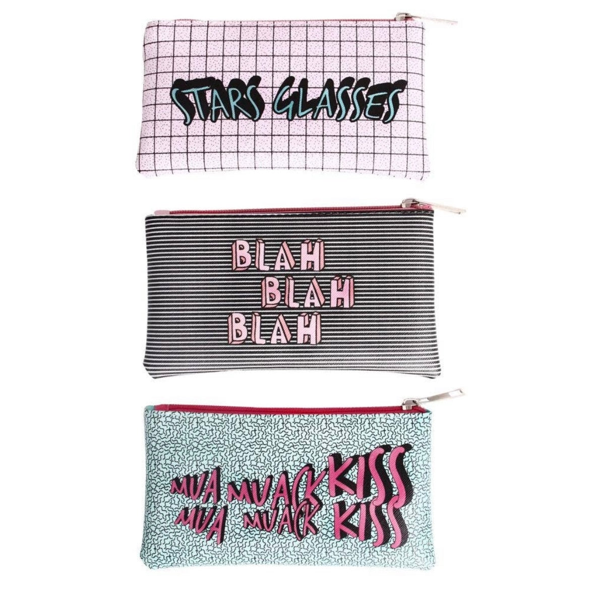 Case with message Sunglasses. Ideal for wearing make-up, pencils, glasses ... It has a zipper and prints with sunglasses. Models: Stars Glasses, Blah Blah Blah and Kiss kiss.