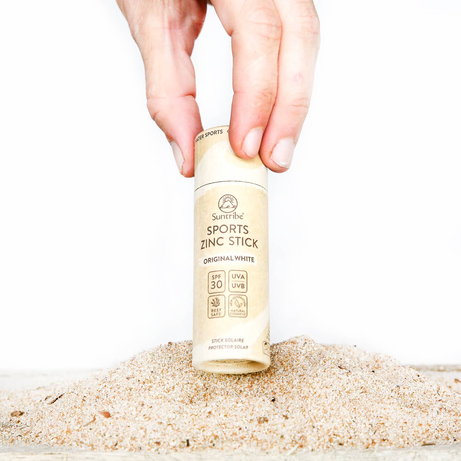 100% NATURAL SUN STICK Thick and visible sports sunscreen made from 100% natural ingredients. Made for temperate climates, easy to apply in temperatures up to 30°C. Comes in a convenient and biodegradable cardboard packaging.