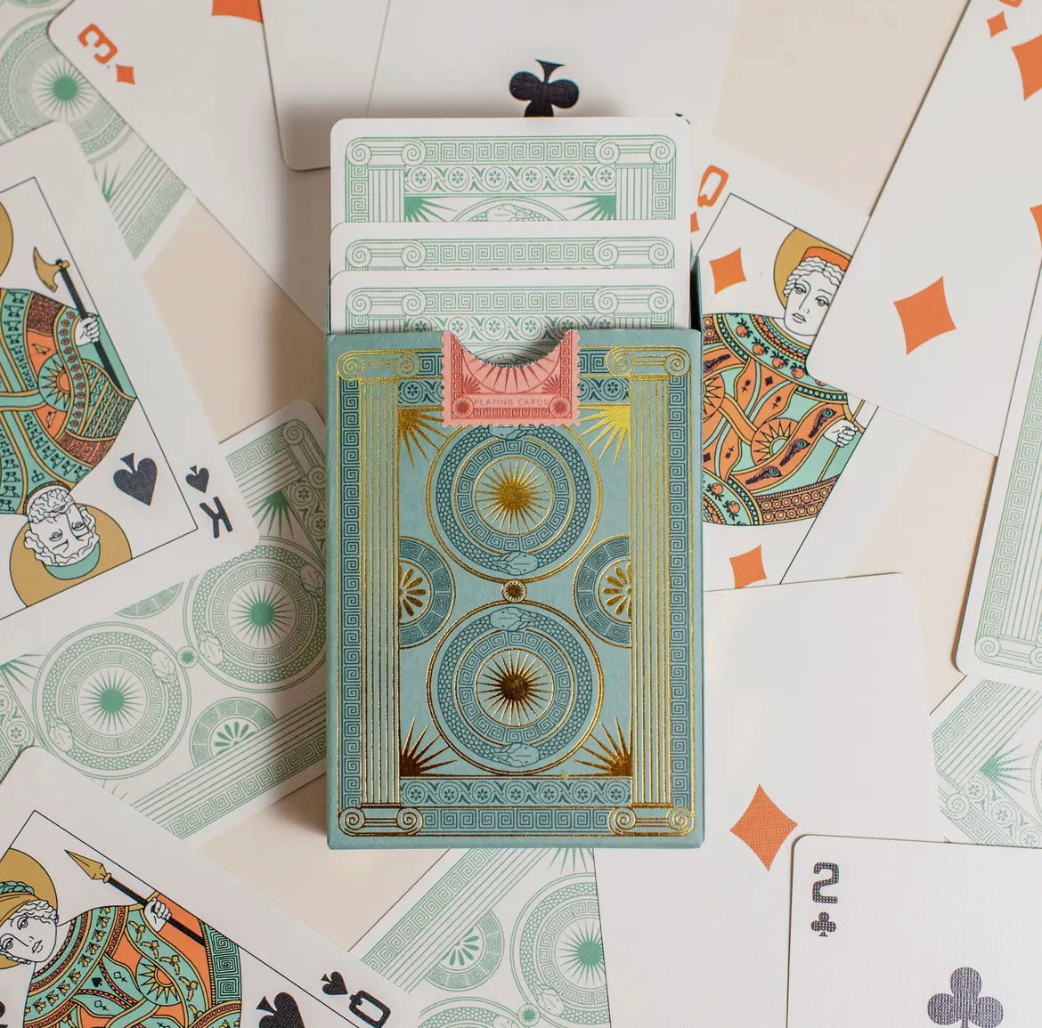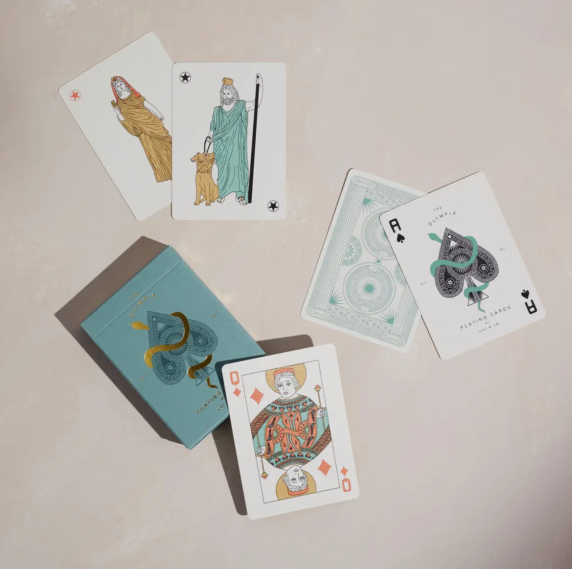 Elevate your games nights with the Olympia playing cards, featuring intricate illustrations inspired by the mythology of the Twelve Olympians.