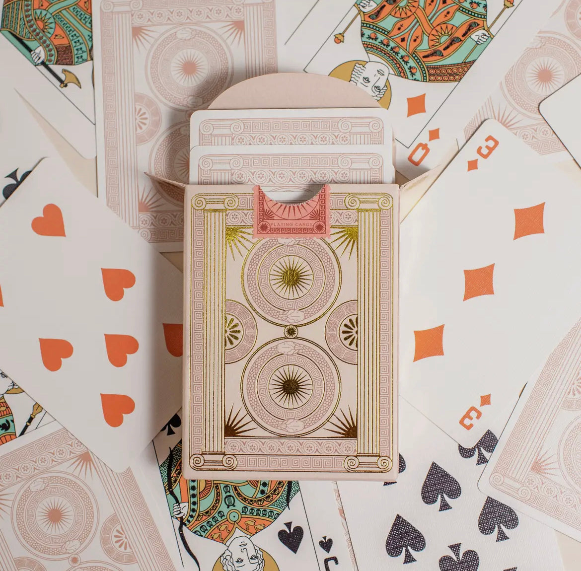 Elevate your games nights with the Olympia playing cards, featuring intricate illustrations inspired by the mythology of the Twelve Olympians.