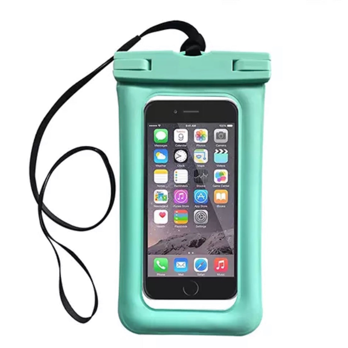 Vanntett mobiletui med tau og «luftramme» for bedre flyteevne.