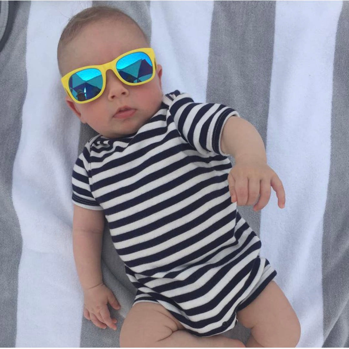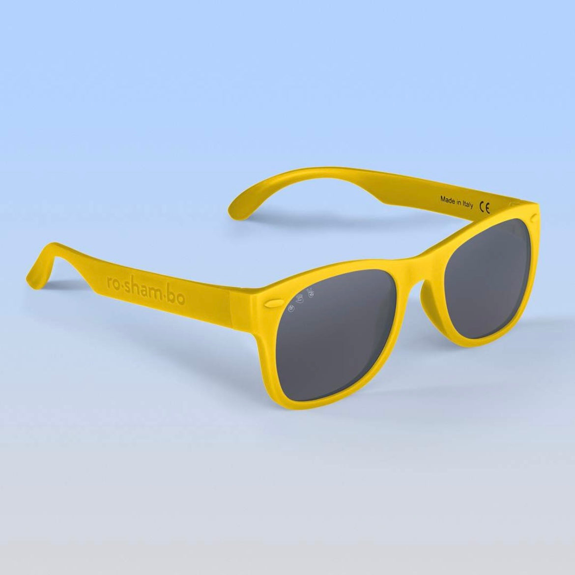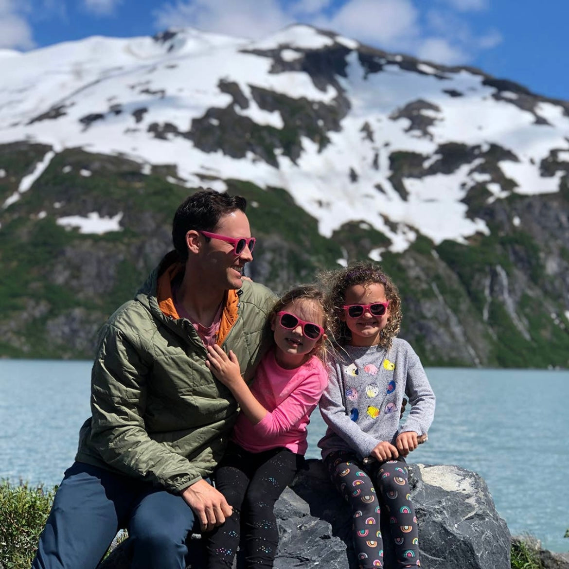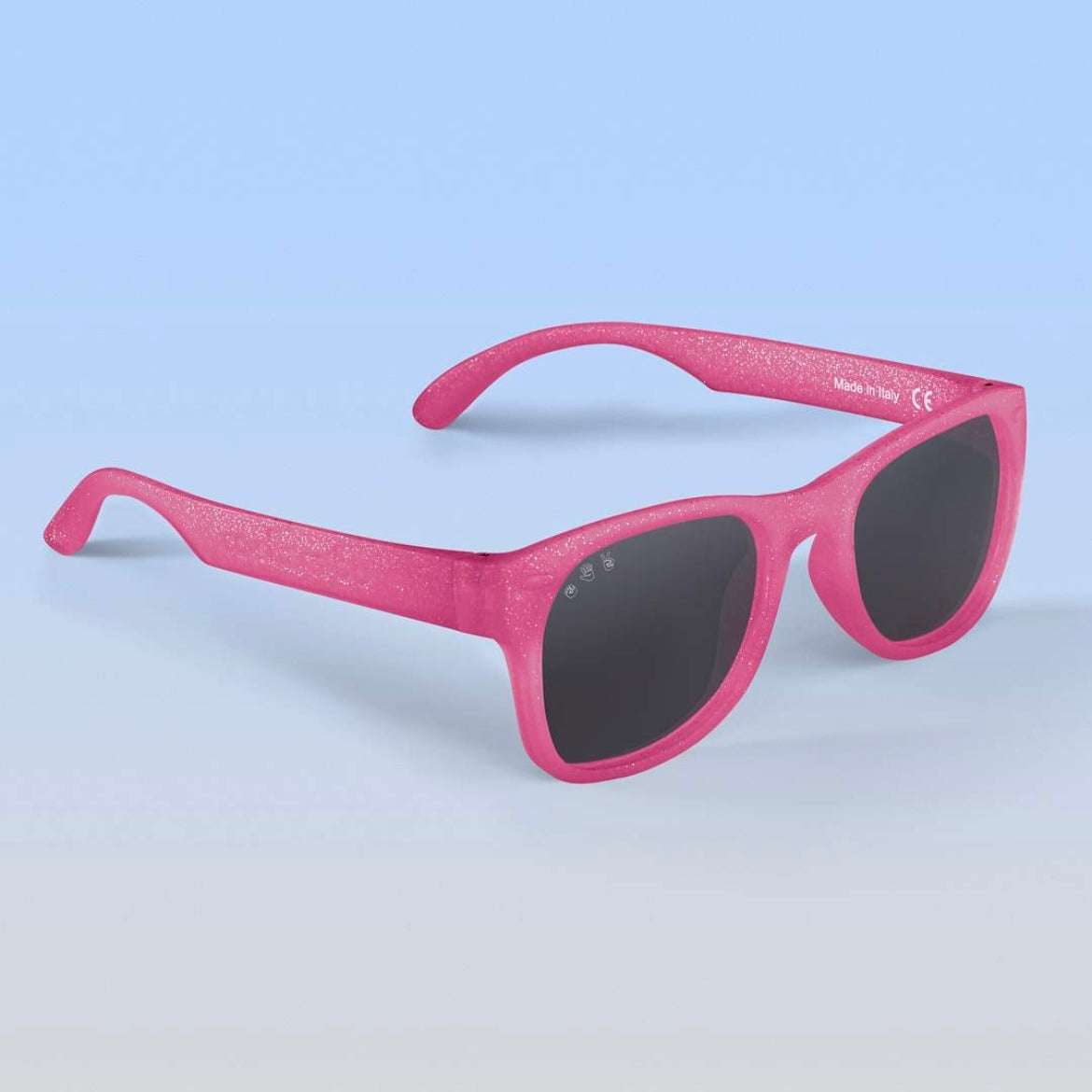 Our mint "Goonies" sunglasses with polarized lenses: + 100% UVA/B/C protection and shatter resistant, with added glare reduction to reduce eye strain and protect your eyes. + Made in Italy like your designer shades, and assembled in USA. + Nearly indestructible: we offer a full damage and lens replacement guarantee. + Certified BPA, lead, and latex free. Small parts tested as safe for babies.